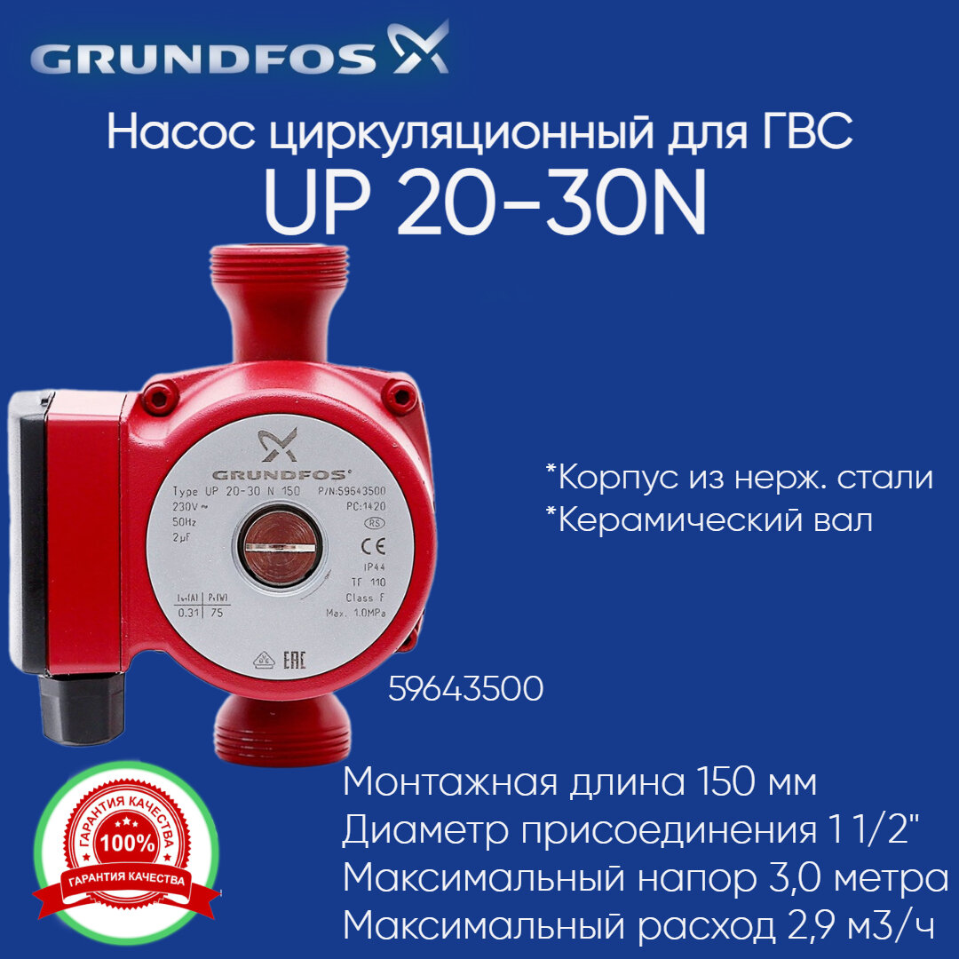 Циркуляционный насос для горячей воды Grundfos UP 20-30 N-150