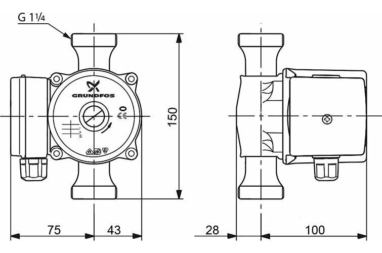 Насос циркуляционный Grundfos UP 20-30 N 150 мм Ø G 1 1/4"