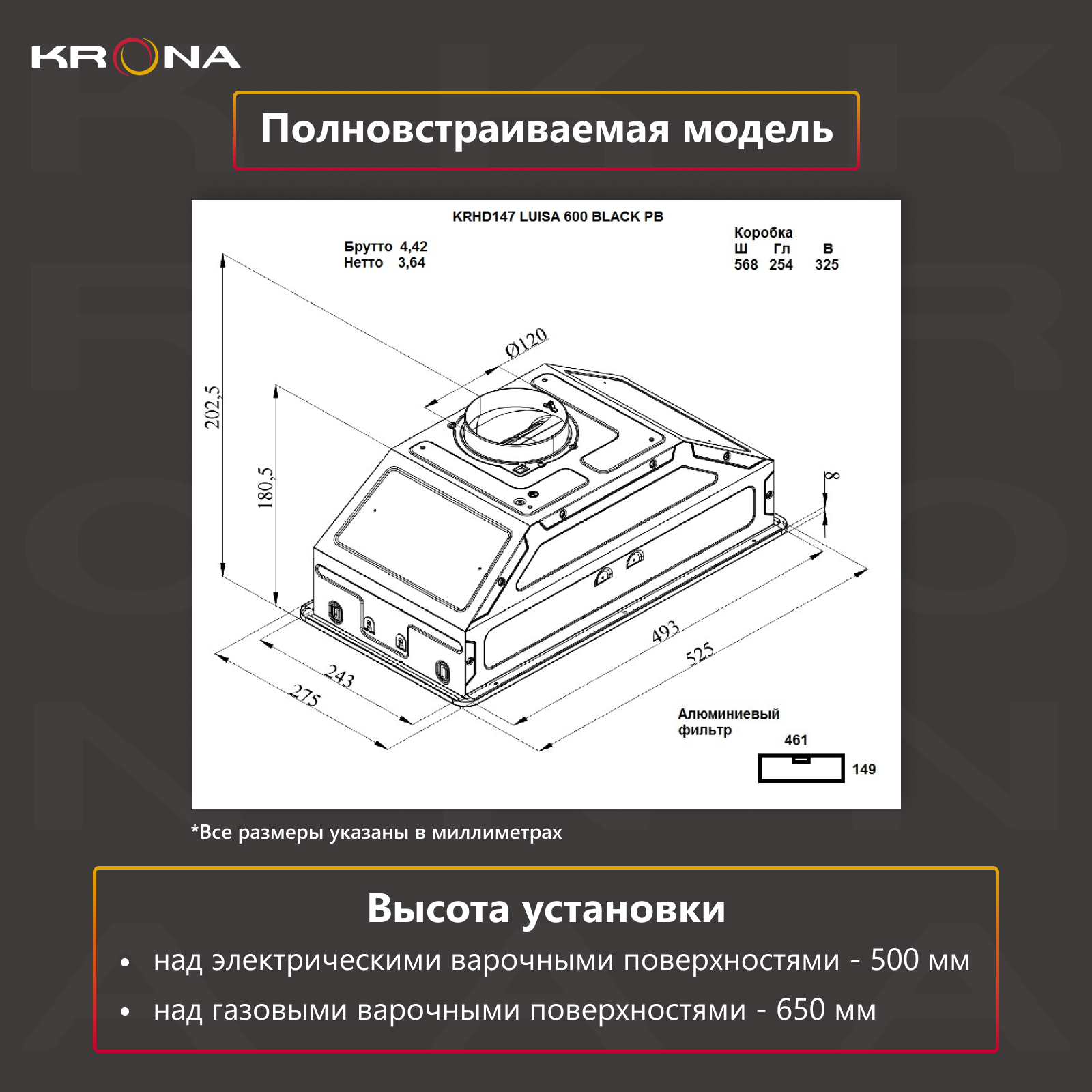 Встраиваемая вытяжка Krona Kamilla 500 черный (00007595)