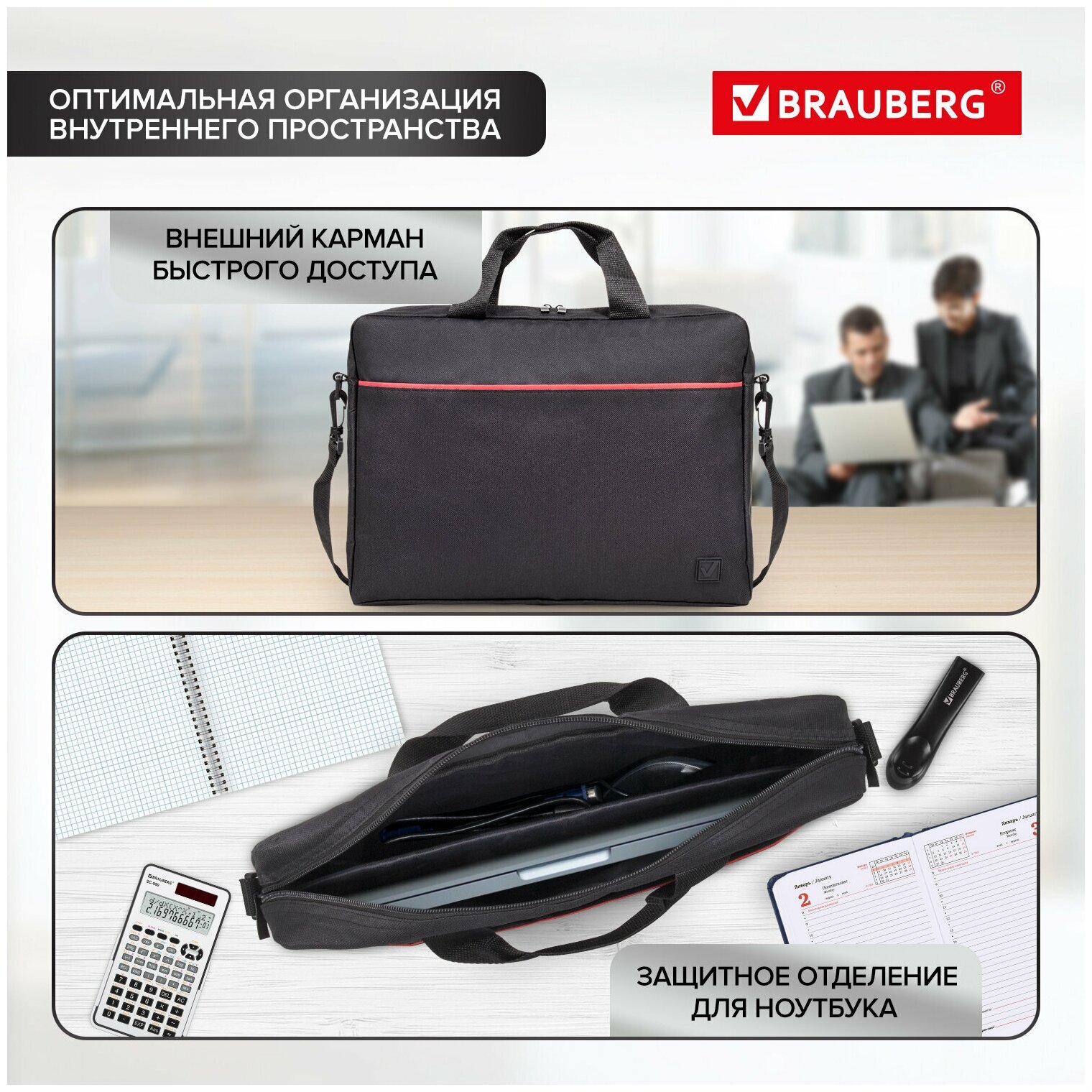 Сумка портфель BRAUBERG PRACTICAL с отделением для ноутбука 15,6", "Red line", черная, 29х40х7 см, 270829