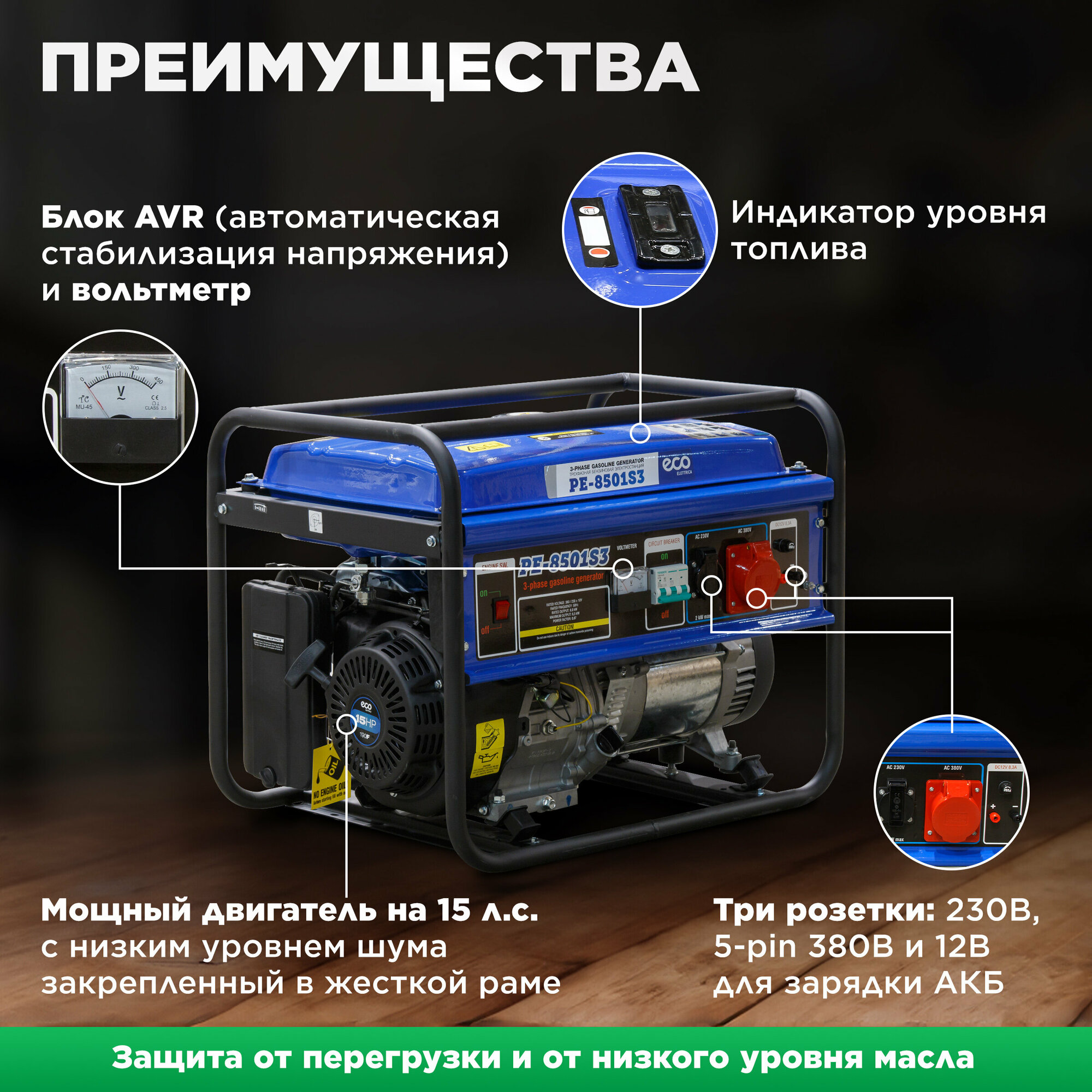 СохранитьГенератор бензиновый ECO PE-8501S3 интересное: