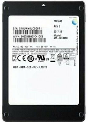 Samsung Enterprise SSD, 2.5"(SFF), PM1643a, 7680GB, SAS, 12Gb/s, R2100/W2000Mb/s, IOPS(R4K) 400K/90K, MTBF 2M, 1DWPD/5Y, OEM (analog MZILS7T6HMLS/MZILT7T6HMLA-00007) интересное: