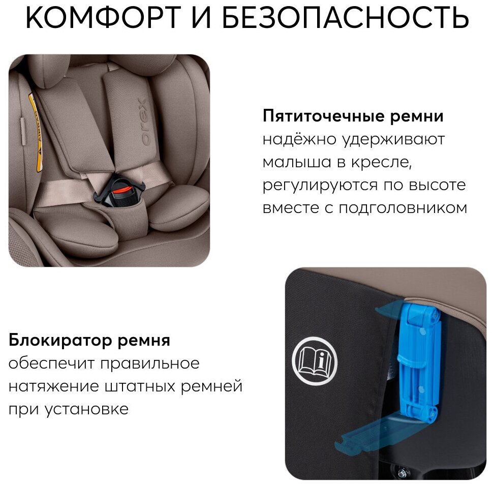 Автокресло детское от 0 до 12 лет Orex Happy Baby группа 0+/1/2/3 (до 36 кг), крепление Isofix, Top Tether, KD06, песочный