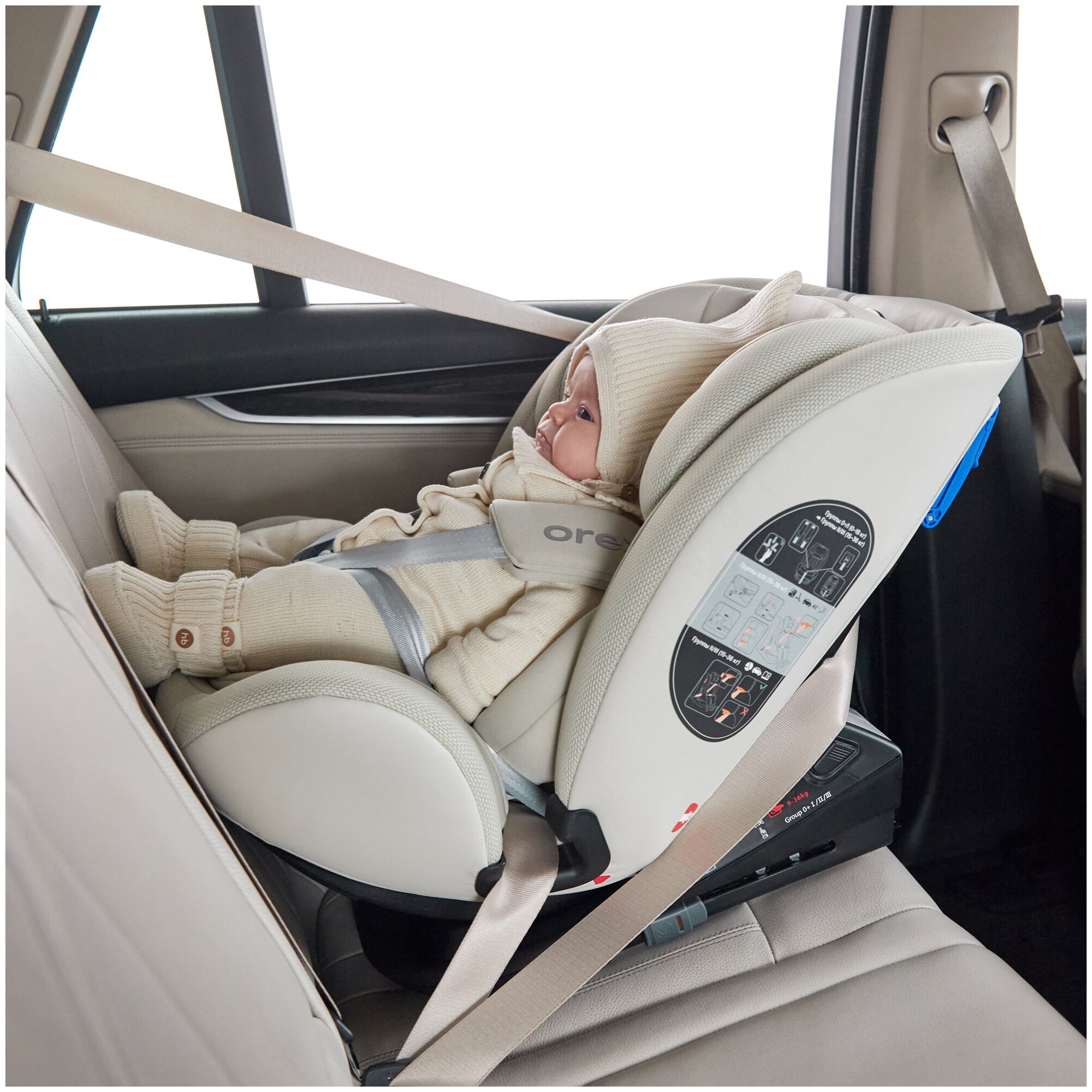 Автокресло детское от 0 до 12 лет Orex Happy Baby группа 0/1/2/3 (до 36 кг), крепление Isofix, Top Tether, KD06, бежевый