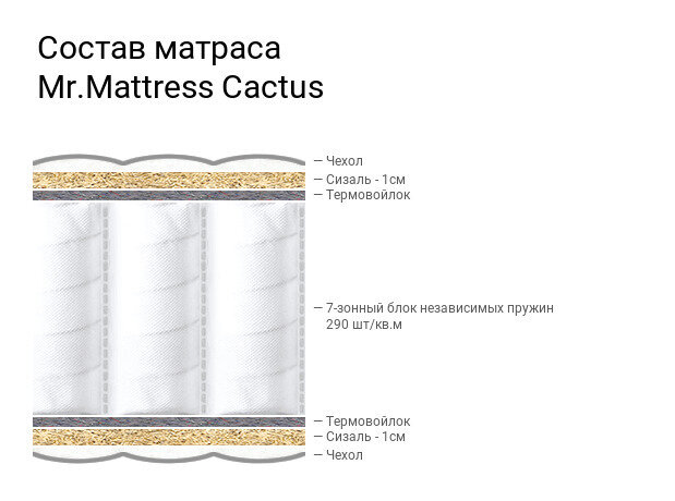 Матрас Mr.Mattress Cactus, Размер 95х185 см