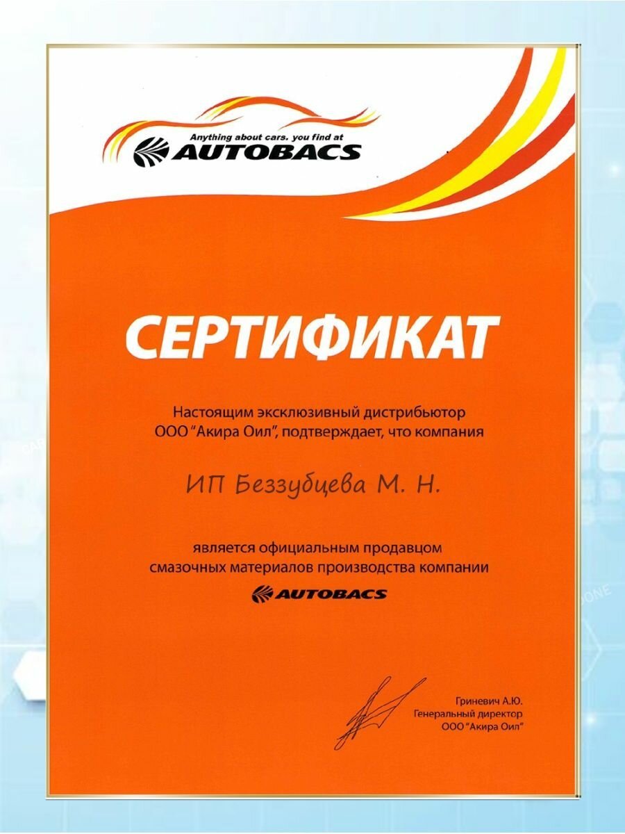 Ниже Вы можете прочитать отзывы на Масло моторное AUTOBACS ENGINE OIL Fully Synthetic 5W-30 SP/CF/GF-6A 4л., ознакомится с подробными характеристиками, посмотреть интересные обзоры и фотографии на Масло моторное AUTOBACS ENGINE OIL Fully Synthetic 5W-30 SP/CF/GF-6A 4л..