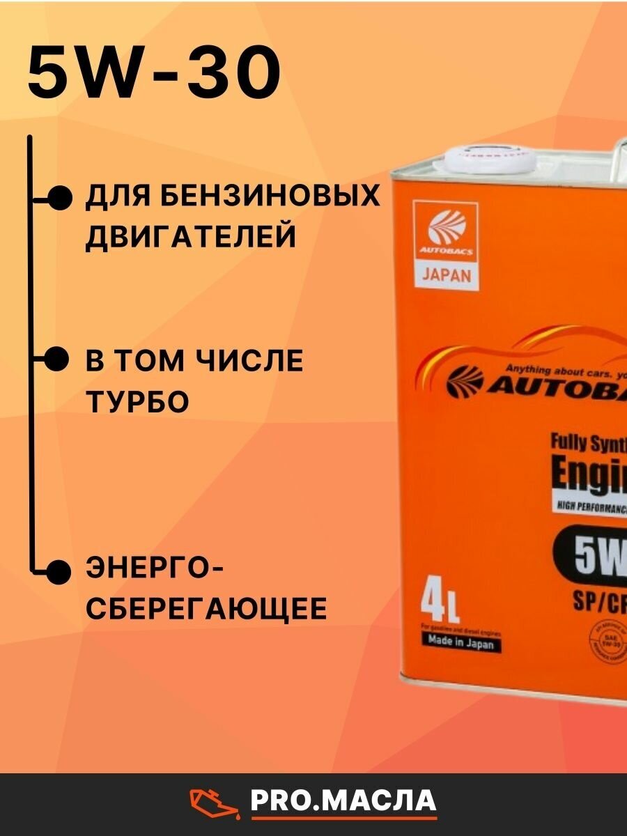 AUTOBACS Sae 5W30 4L 5W-30 Engine Oil Api Sp/Cf Ilsac Gf-6A Fully Synthetic Моторное Масло Синтетическое