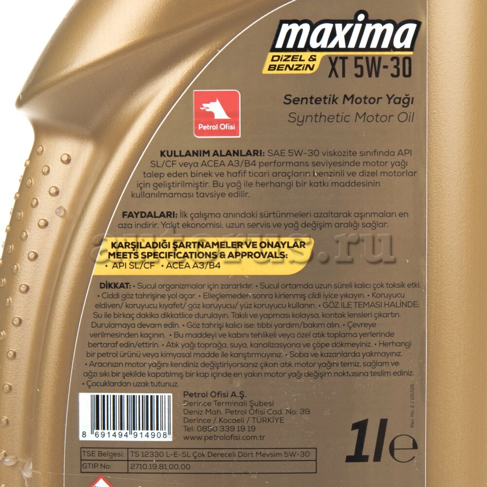 Ниже Вы можете прочитать отзывы на PETROL OFISI 11205-55YG Масло моторное Petrol Ofisi MAXIMA XT 5W-30 синтетическое 1 л 11205-55YG, ознакомится с подробными характеристиками, посмотреть интересные обзоры и фотографии на PETROL OFISI 11205-55YG Масло моторное Petrol Ofisi MAXIMA XT 5W-30 синтетическое 1 л 11205-55YG.