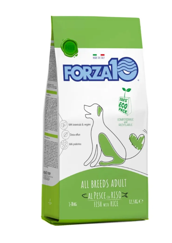 Forza10 корм для взрослых собак всех пород, рыба и рис 12,5 кг