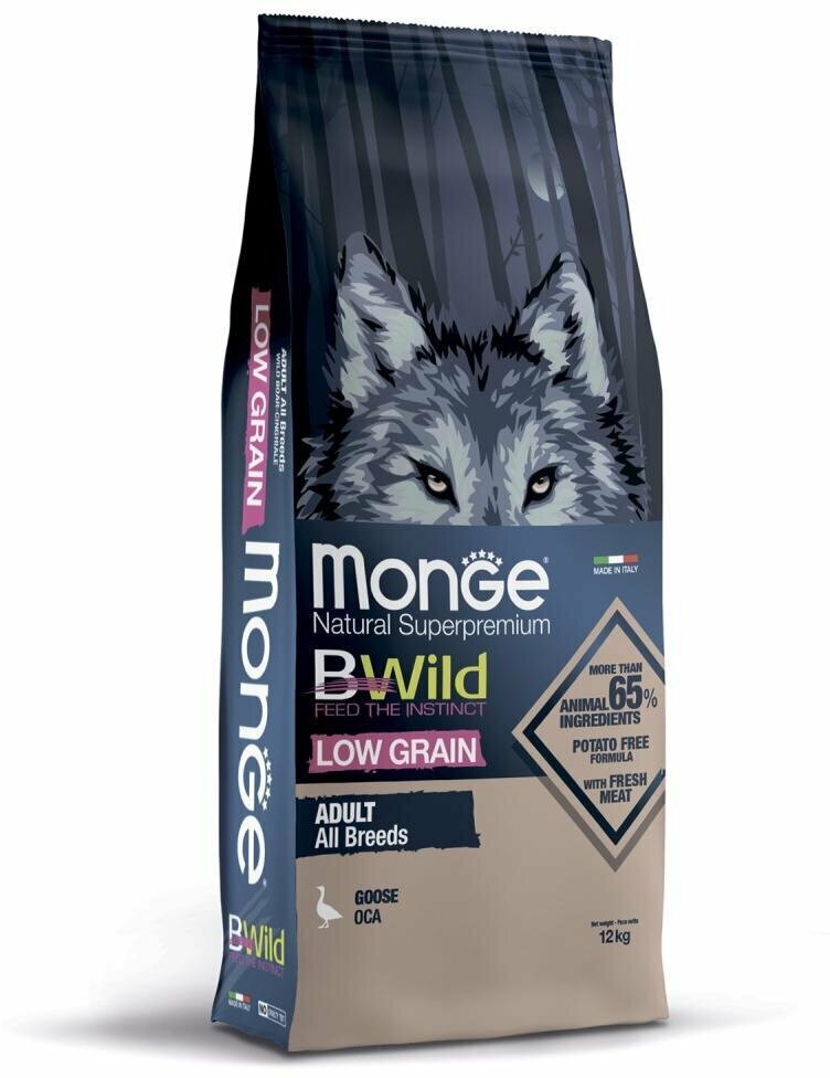 MONGE BWILD LOW GRAIN DOG ADULT ALL BREEDS GOOSE низкозерновой для взрослых собак всех пород с гусем (12 кг)