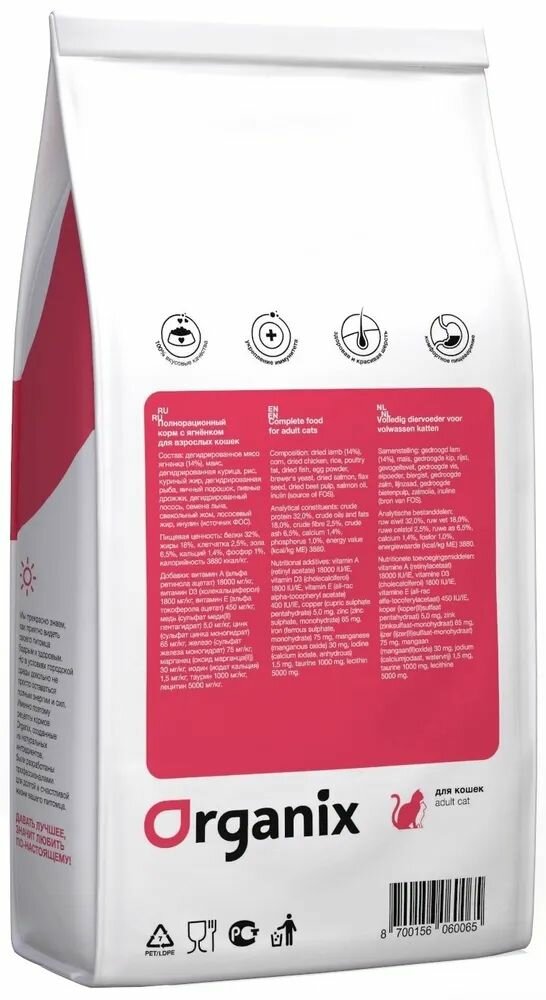 Сухой корм ORGANIX ADULT CAT LAMB для взрослых кошек при аллергии с ягненком (1,5 кг)
