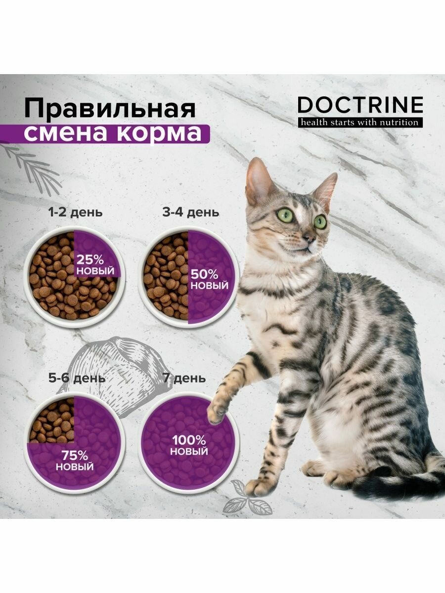 Корм сухой Doctrine беззерновой, полнорационный для стерилизованных кошек и кастрированных котов с индейкой и лососем, 3 кг