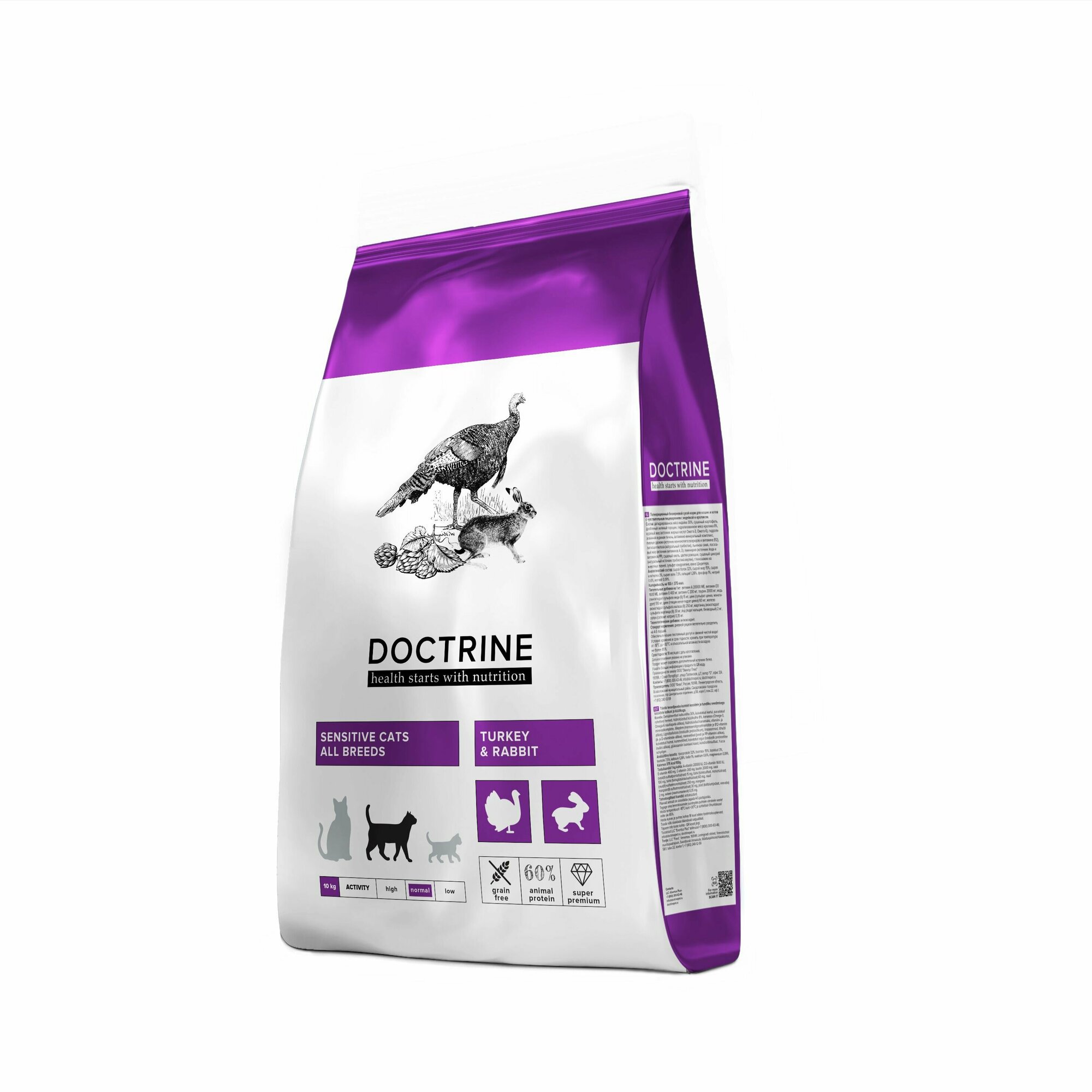 Doctrine - Полнорационный беззерновой сухой корм для кошек и котов с чувствительным пищеварением, с Индейкой и Кроликом (10 кг)