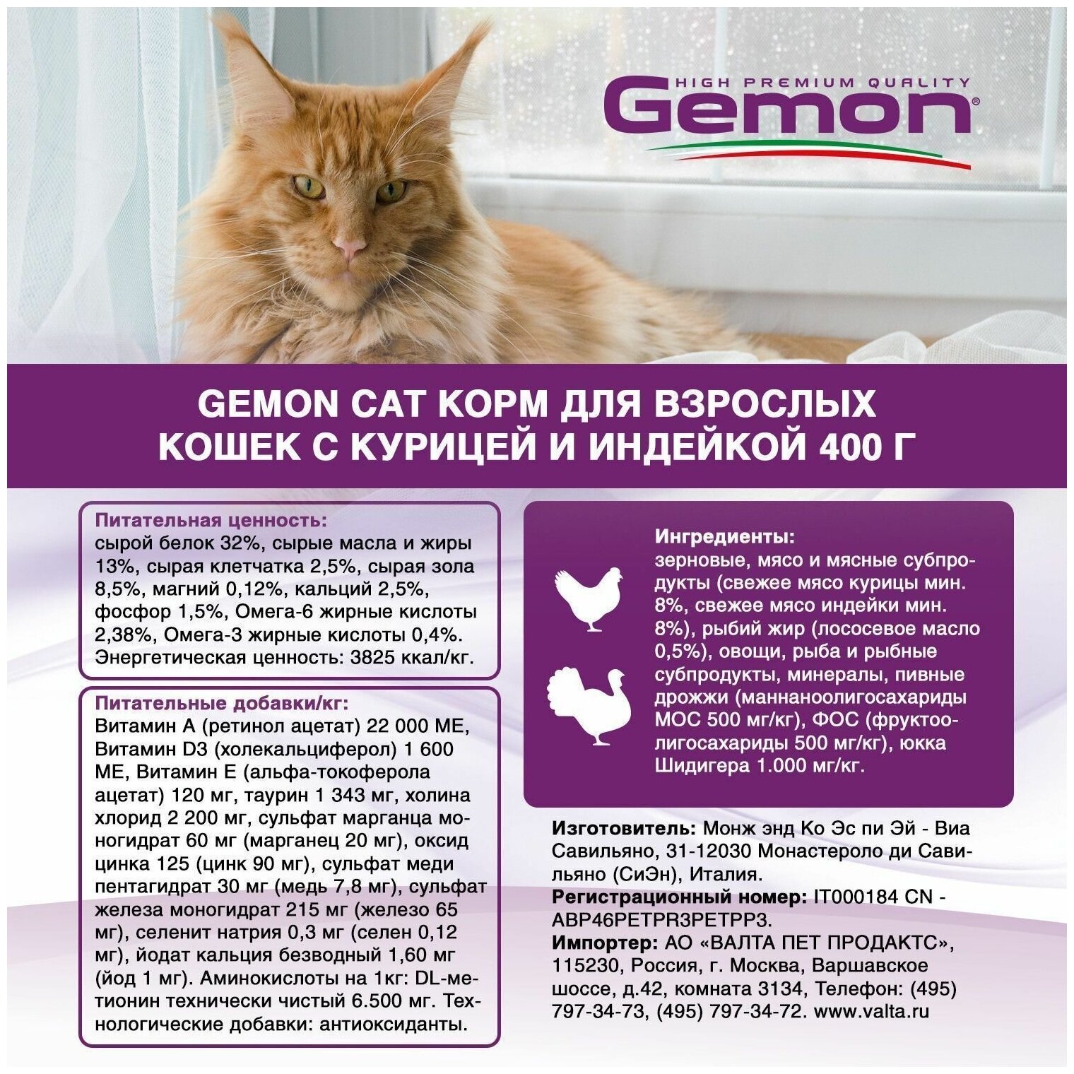 Сухой корм Gemon Cat Adult Complete для взрослых кошек (10 кг, Курица и индейка) интересное: