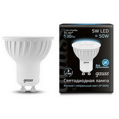 10шт/уп. Лампа LED Спот 5Вт 230B MR16 GU10 530Лм 4100К Свет Нейтральный белый арт. 101506205 Gauss, уп. 10шт