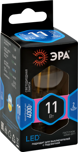 ЭРА F-LED P45-11w-840-E14 (филамент, шар, 11Вт, нейтр, E14)
