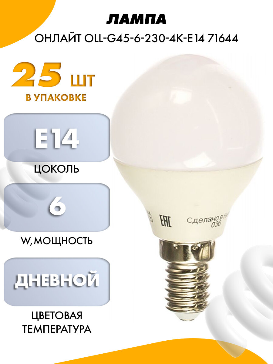 Светодиодная лампа шар онлайт 71 644 OLL-G45-6-230-4K-E14, цена за 1 шт.