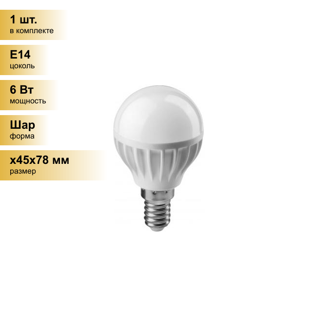 Онлайт шар G45 E14 6W(470Lm) 4000K 4K 78x45 ОLL-G45-6-230-4K-E14 71644 (арт. 509372)