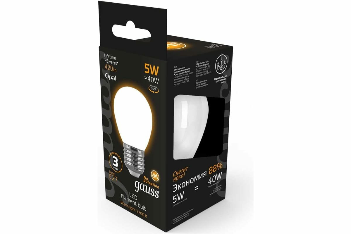 СохранитьЛампа светодиодная gauss Black Filament 105202105, E27, G45, 5 Вт, 2700 К интересное: