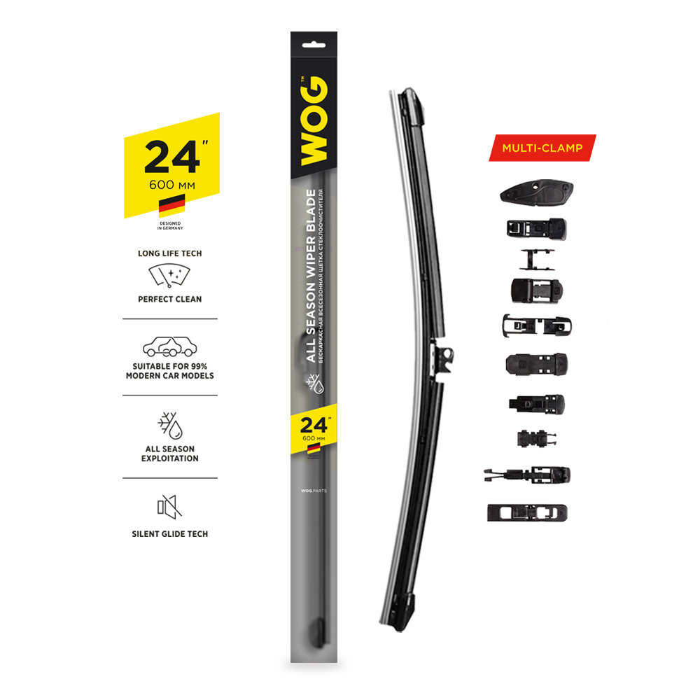WOG WGC1409 Щетка стеклоочистителя всесезонная бескаркасная, бесшумная 24 inch с комплектом адаптеров (10 шт.), 1 шт