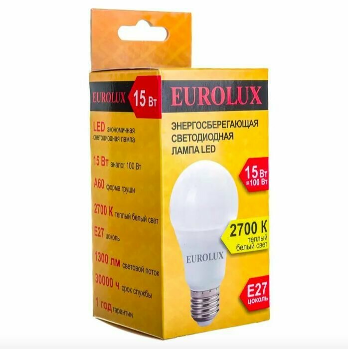 Ниже Вы можете прочитать отзывы на Лампа светодиодная LL-E-A60-15W-230-2,7K-E27 (груша, 15Вт, тепл., Е27) Eurolux, ознакомится с подробными характеристиками, посмотреть интересные обзоры и фотографии на Лампа светодиодная LL-E-A60-15W-230-2,7K-E27 (груша, 15Вт, тепл., Е27) Eurolux.