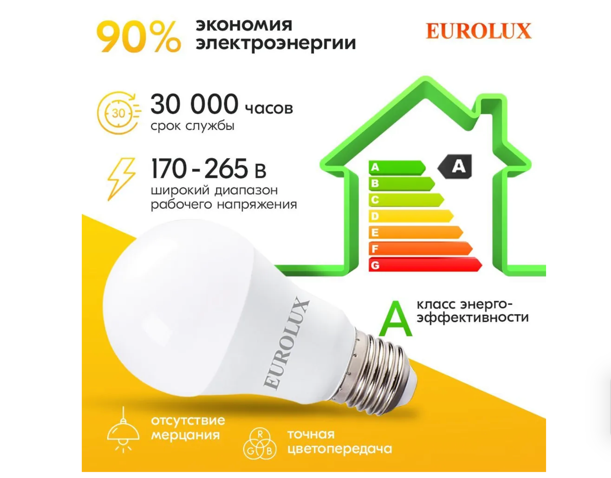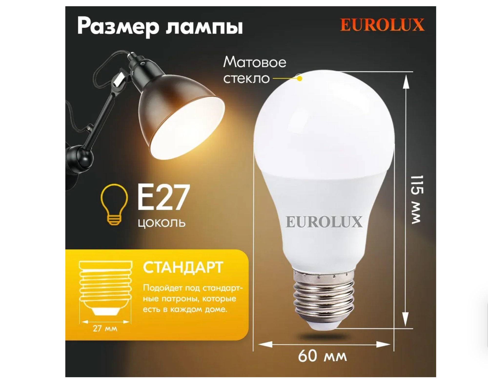 Лампочка Eurolux LL-E-A60-15W-230-6K-E27 76/2/74