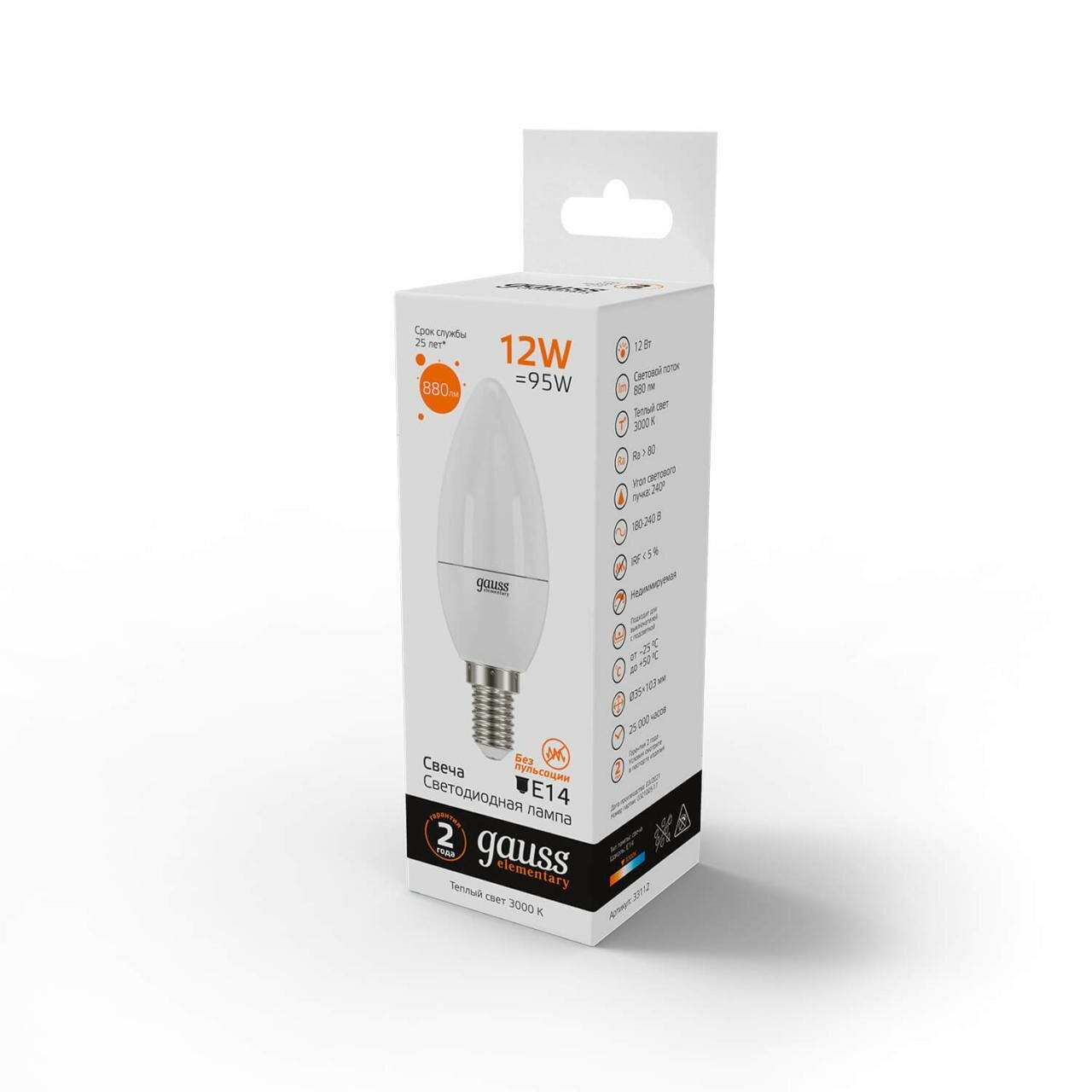 Ниже Вы можете прочитать отзывы на Лампа светодиодная gauss Elementary 33112, E14, C37, 12 Вт, 3000 К, ознакомится с подробными характеристиками, посмотреть интересные обзоры и фотографии на Лампа светодиодная gauss Elementary 33112, E14, C37, 12 Вт, 3000 К.