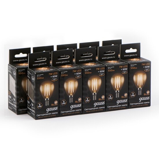 (7 шт.) Светодиодная лампочка Gauss Globe G45 7Вт 150-265В 2700K E14 филамент.