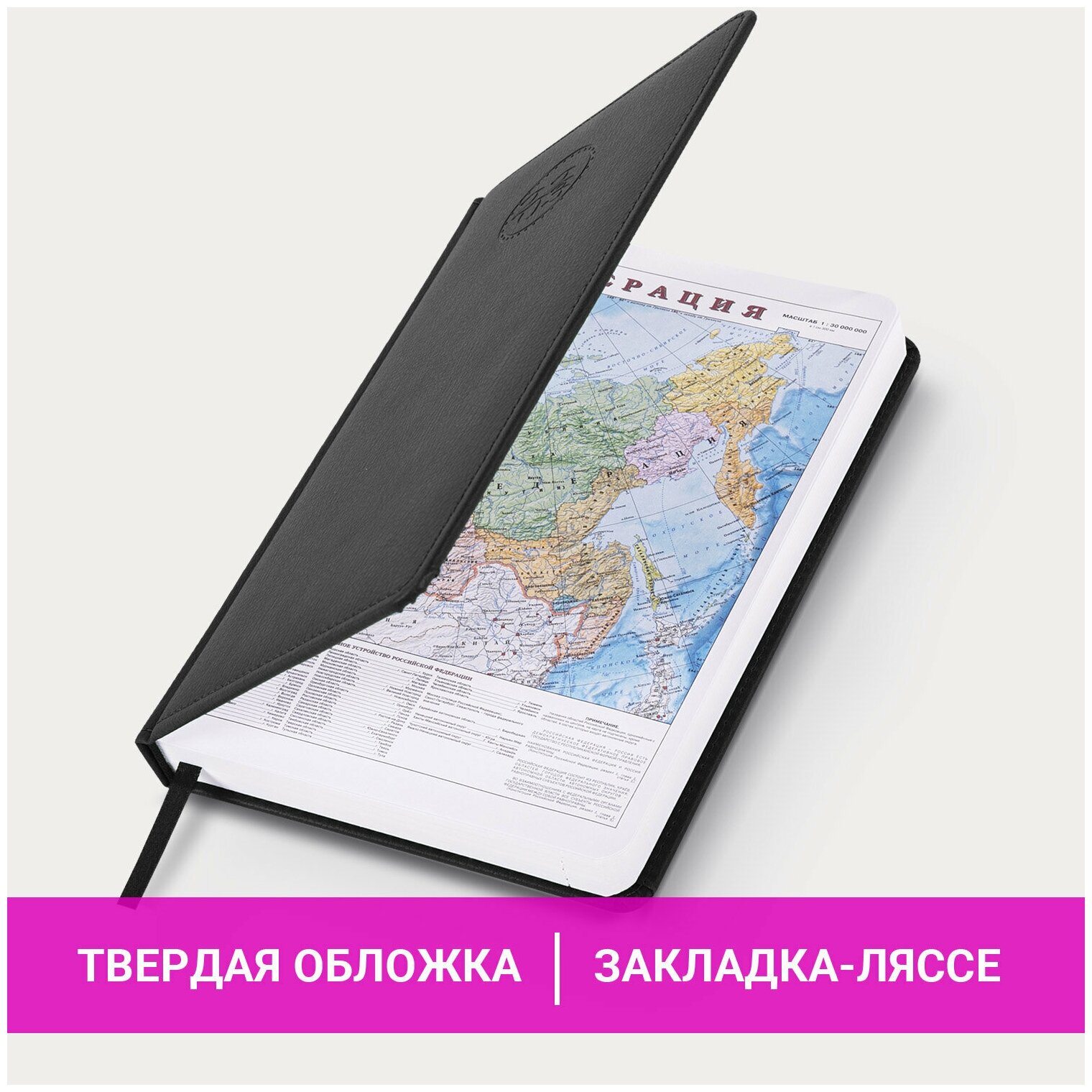 | Особенности | закругленные углы / календарь / ляссе / перфорация уголков / прошивка по периметру обложки / справочная информация |