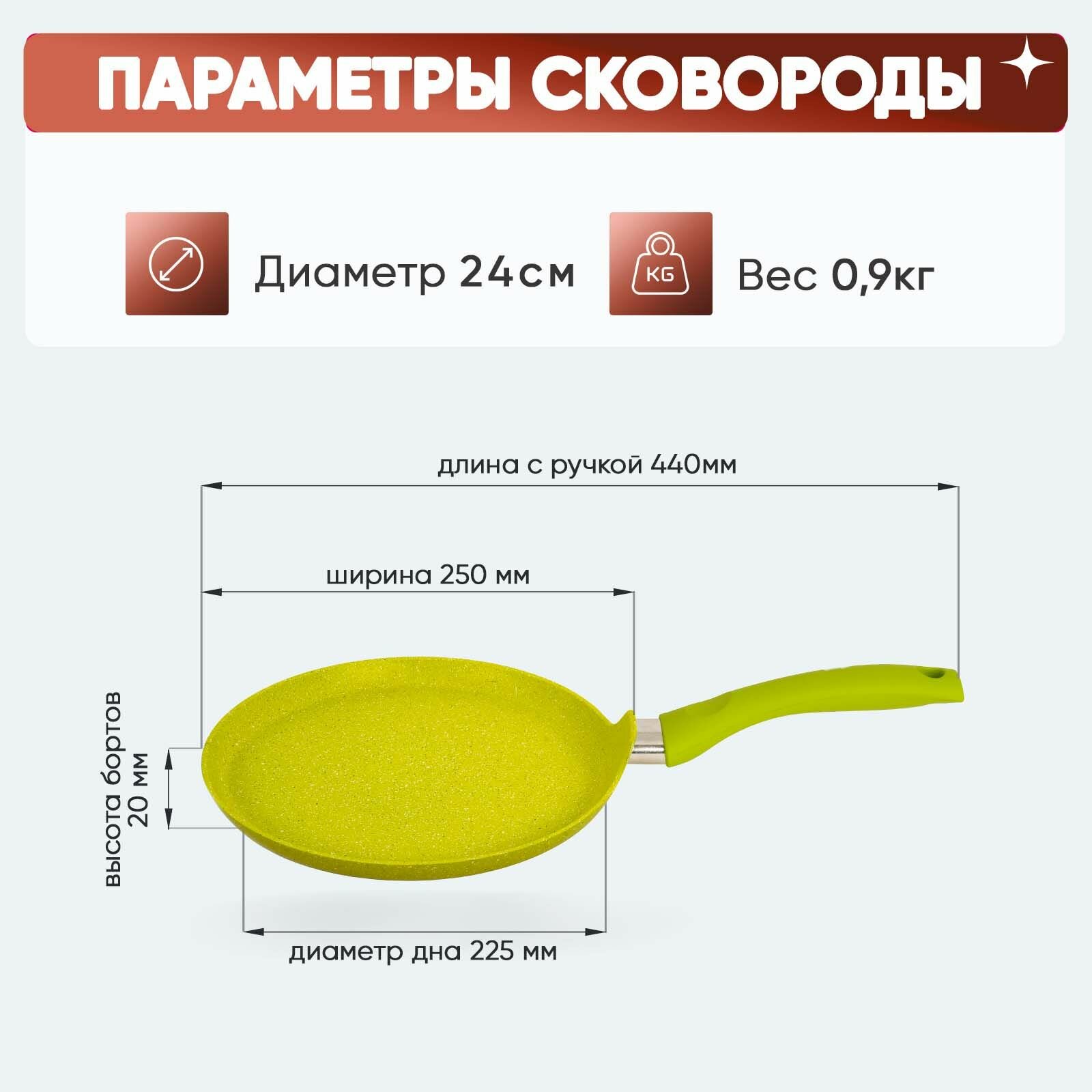 Сковорода блинная кукмор сб220tsl 22 см, зеленый