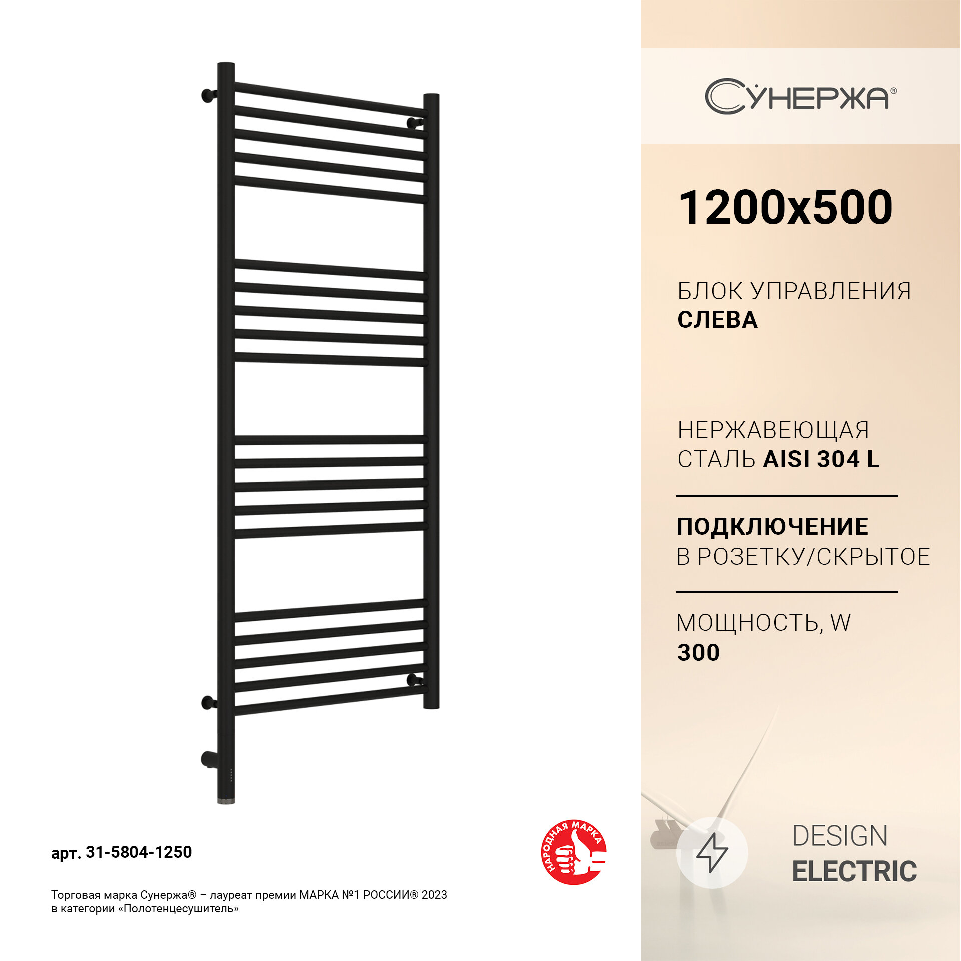 Полотенцесушитель электрический Сунержа Богема 3.0 прямая 1200х500 МЭМ левый Матовый черный 31-5804-1250