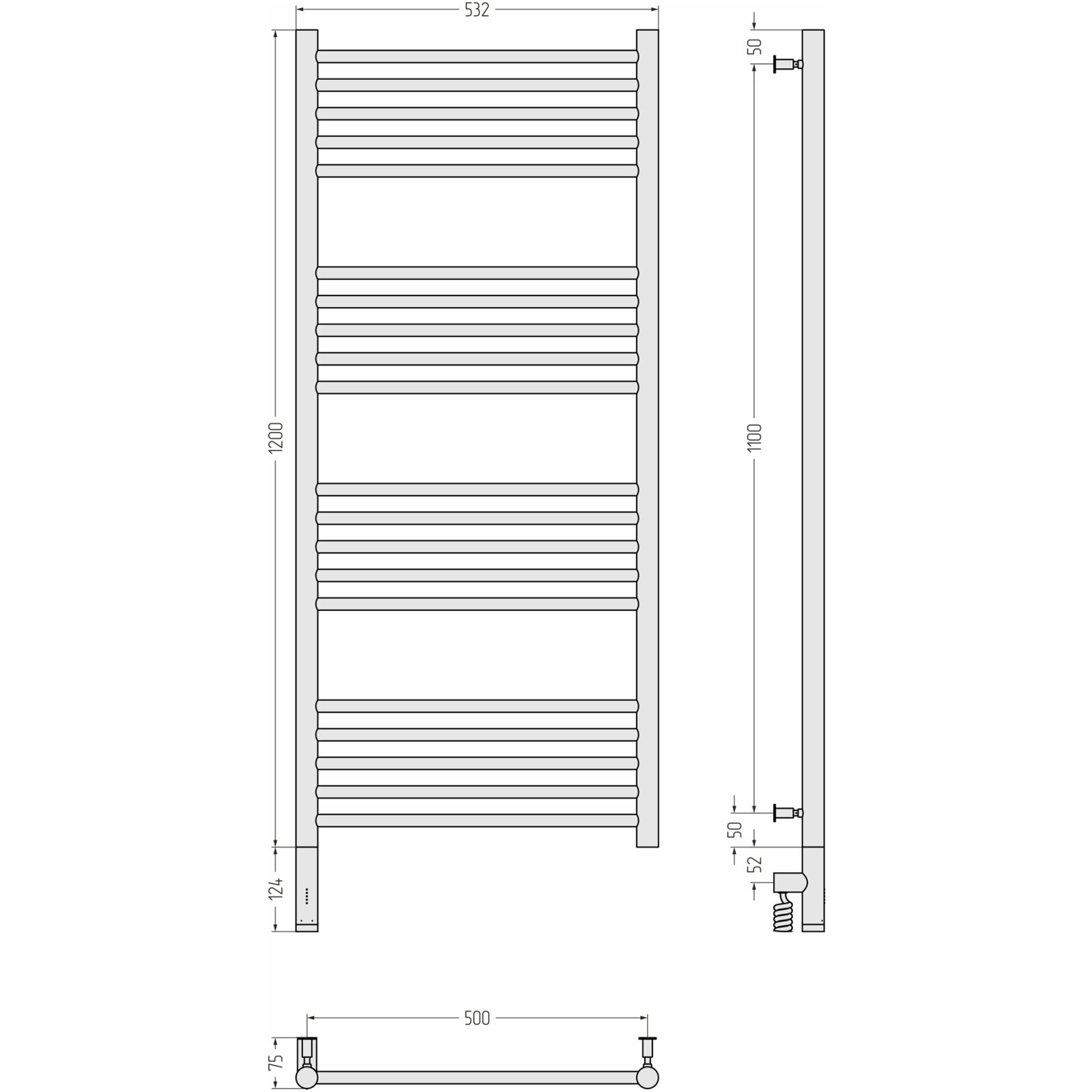 Полотенцесушитель электрический Сунержа Богема 3.0 прямая 1200х500 МЭМ левый Без покрытия