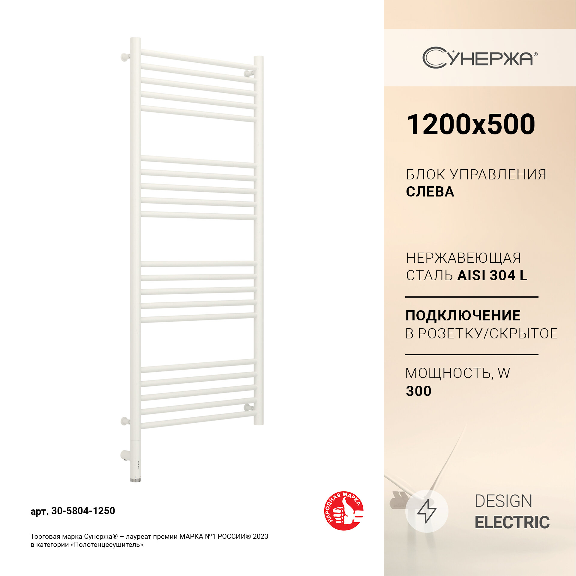 Электрический полотенцесушитель Сунержа Богема 3.0 прямая 1200x500 МЭМ Лев. белый арт. 12-5804-1250
