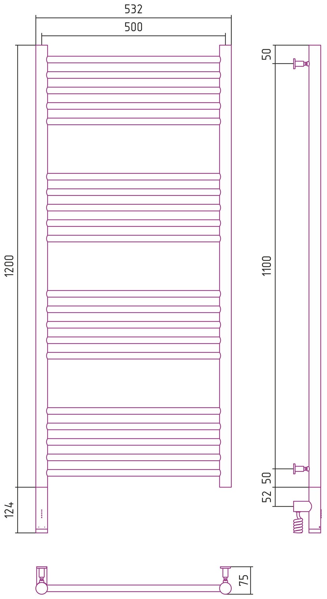 Электрический полотенцесушитель Сунержа богема 3.0 прямая 1200X500 МЭМ левый, арт. 00-5804-1250