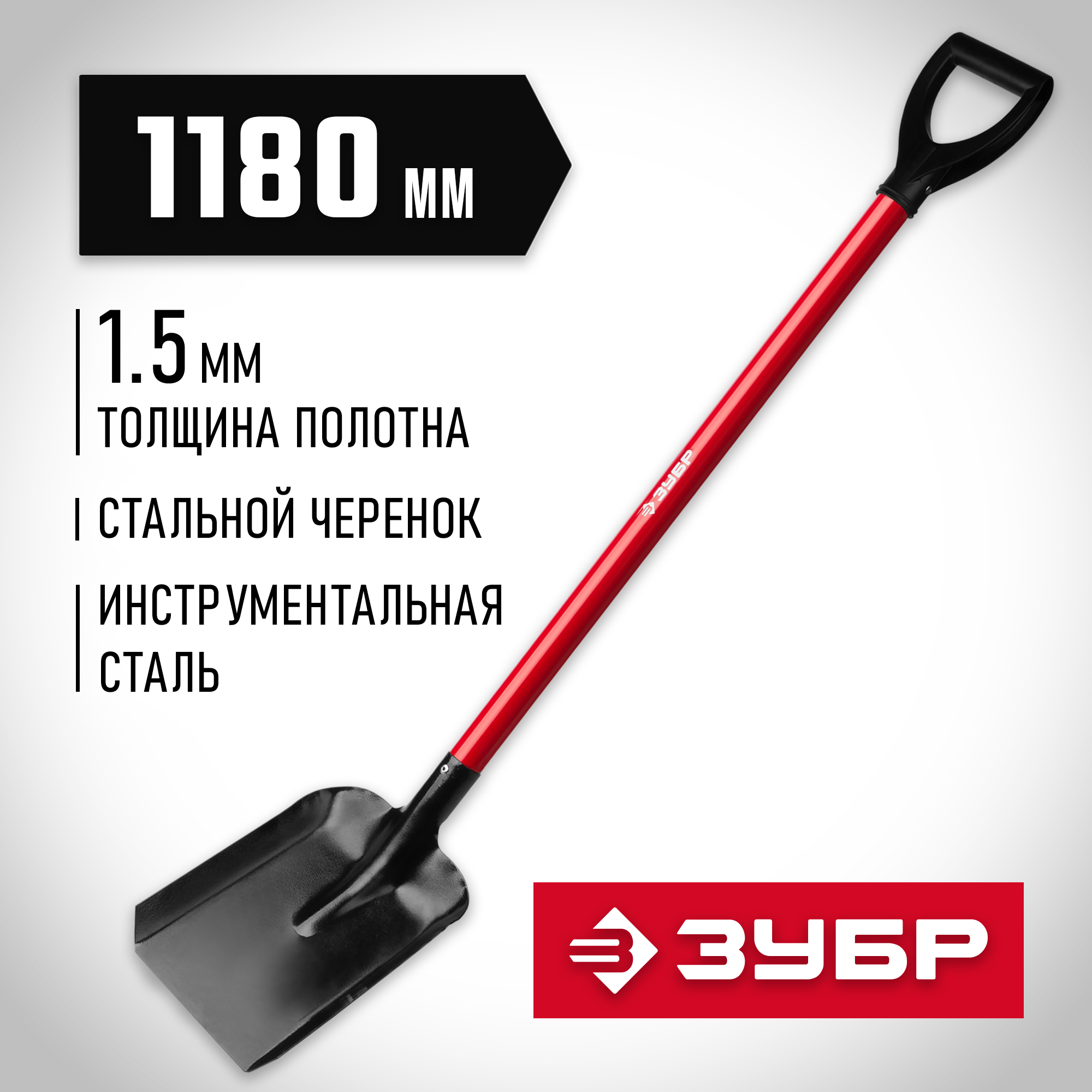 ЗУБР мастер, 270х220х1180мм, полотно 1.5мм, стальной прямой черенок с рукояткой, совковая лопата, тип ЛСП (39524)