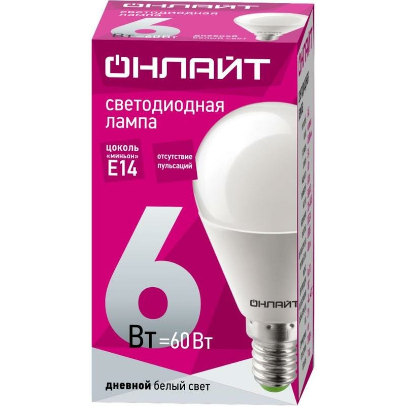 Лампа светодиодная 61 136 OLL-G45-6-230-6.5K-E14 6Вт онлайт 61136