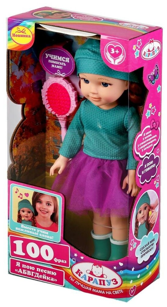 Кукла Карапуз озвученная, песня Абвгдейка, Катерина, 38 см, в кэжуал, 100 фраз, аксессуары, коробка (EB38D-CAS-40348) интересное:
