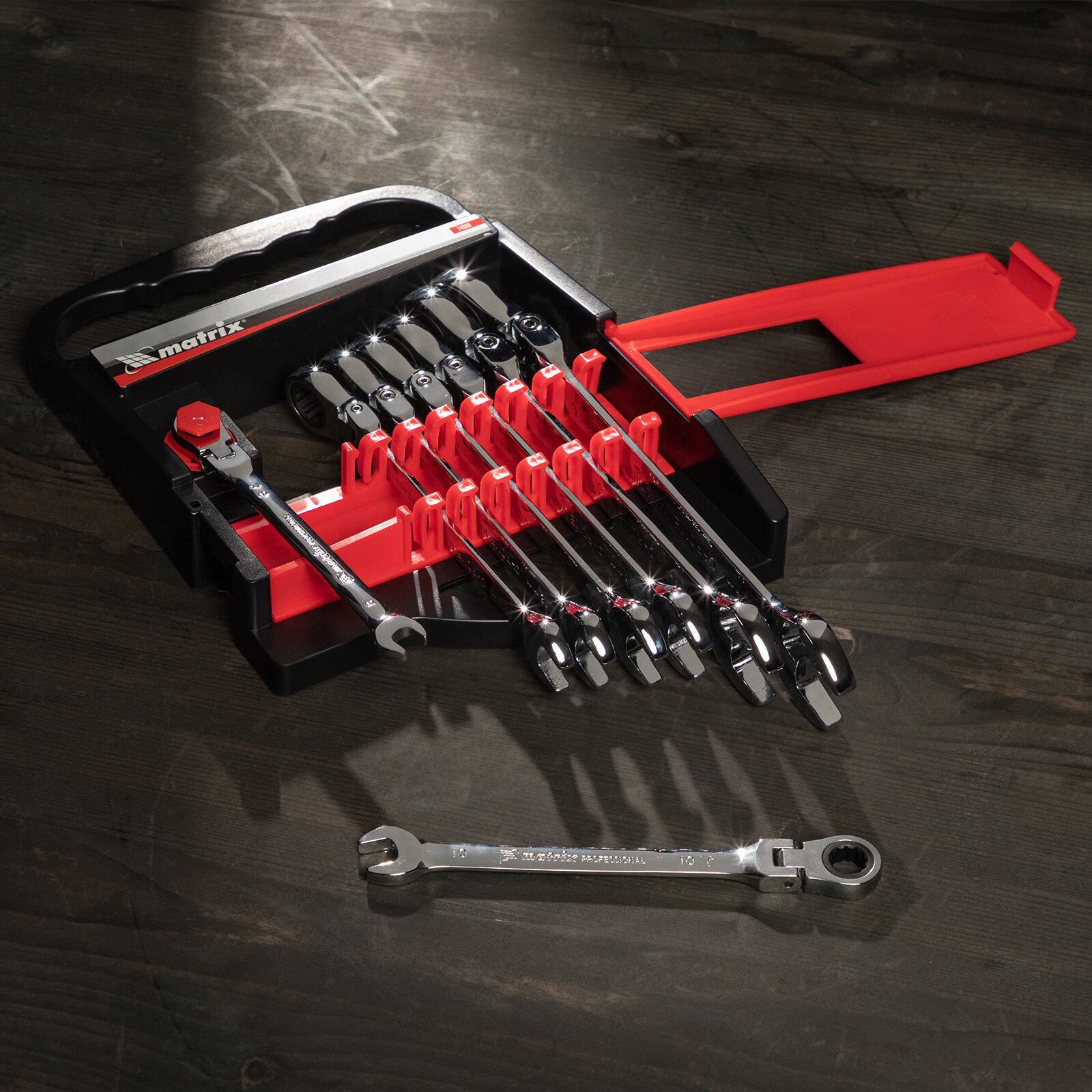 Набор комбинированных трещоточных шарнирных ключей MATRIX 8шт 14898