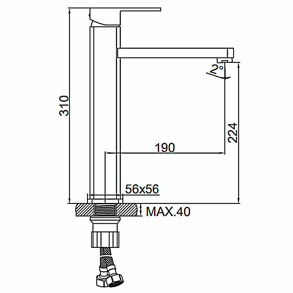 Смеситель для умывальника, высокий, карт.35мм, гайка, черный Ledeme, 1/10; L1133B