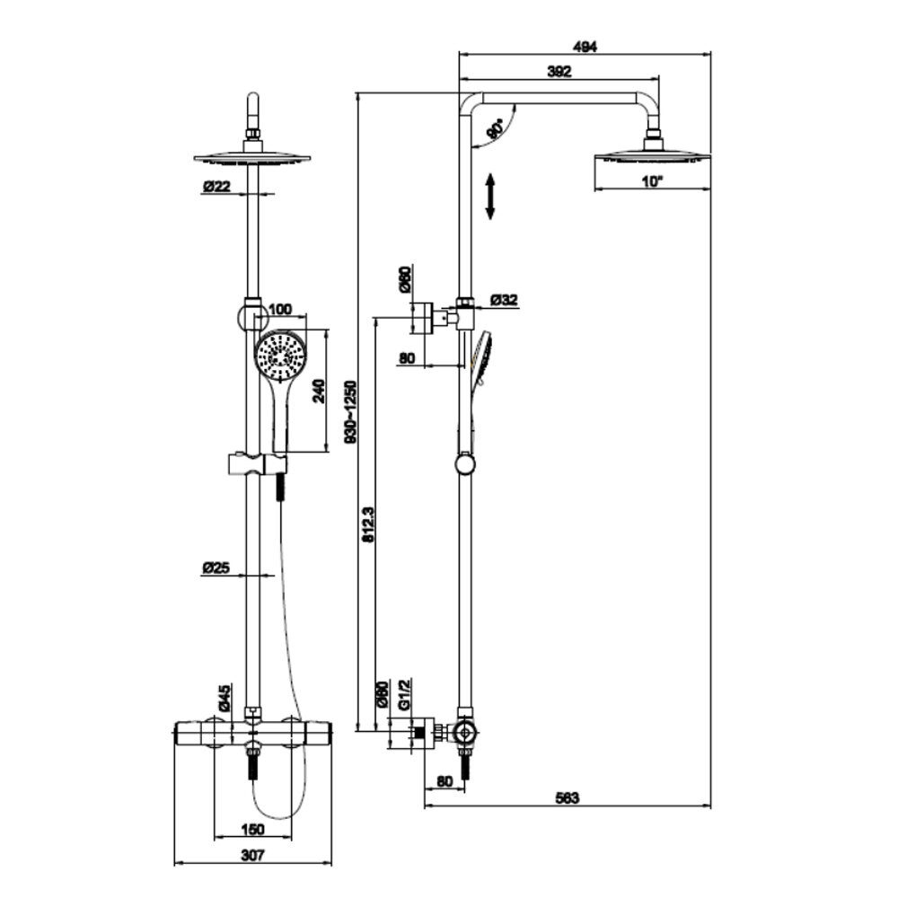 | Комплектация | смеситель термостатический 1шт. / душевая стойка 1шт. / верхний душ 1шт. / лейка 1шт. / шланг 1шт. |