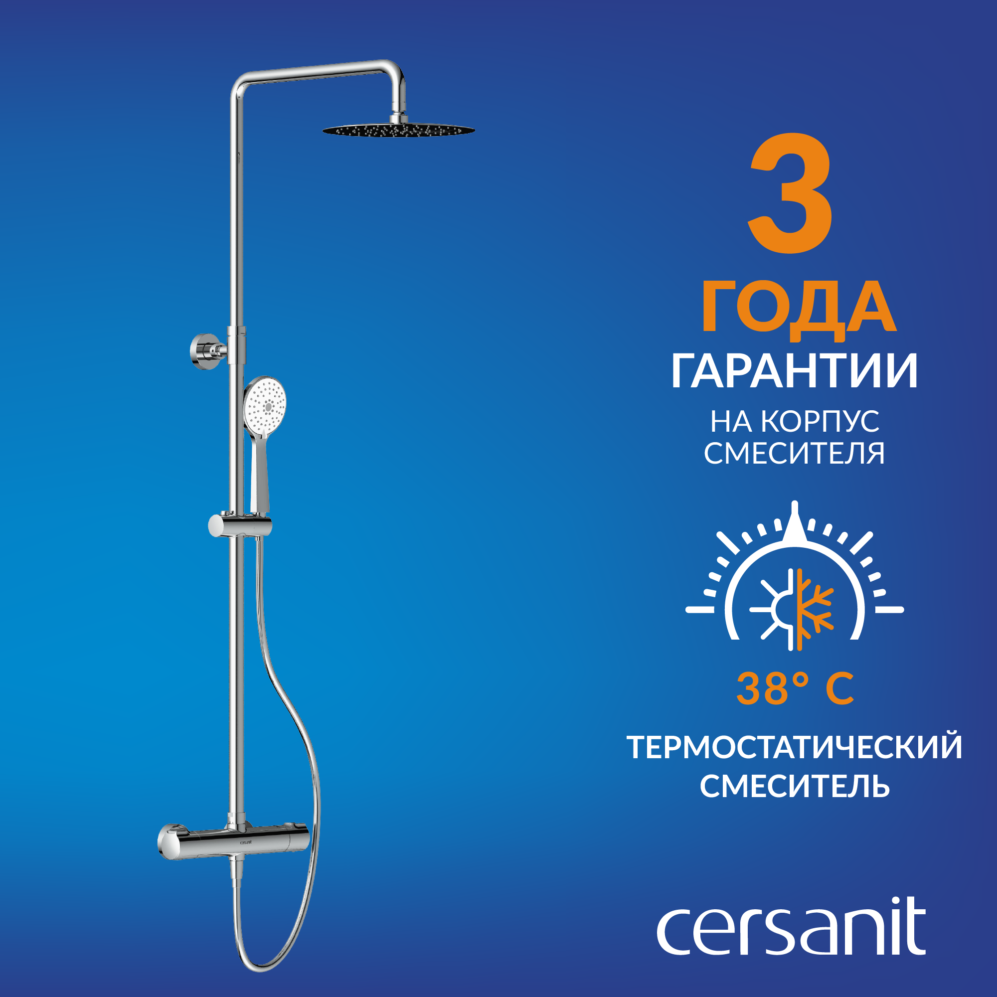 Душевая система Cersanit ODRA 63069 с верхним душем d 245 мм с лейкой d 100 мм с термостатом
