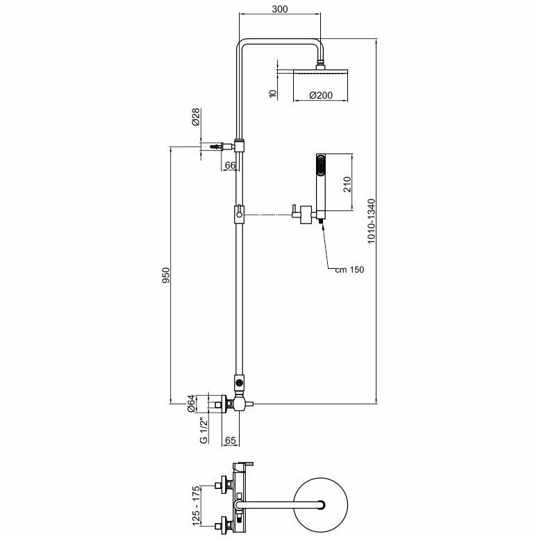 | Дополнительная информация | верхний душ: материал - PVC, диаметр 200 мм; ручной душ: материал - PVC, размер 60 мм; регулировка штанги по высоте; регулировка держателя для душа по высоте и углу наклона |