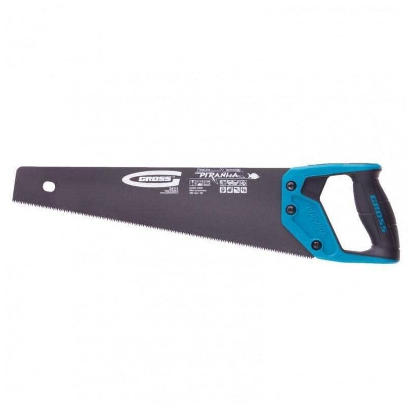 Ножовка по дереву Gross PIRANHA 400 мм, 7-8 TPI, зуб - 3D, каленый зуб, 2-х комп. рук-ка 24109