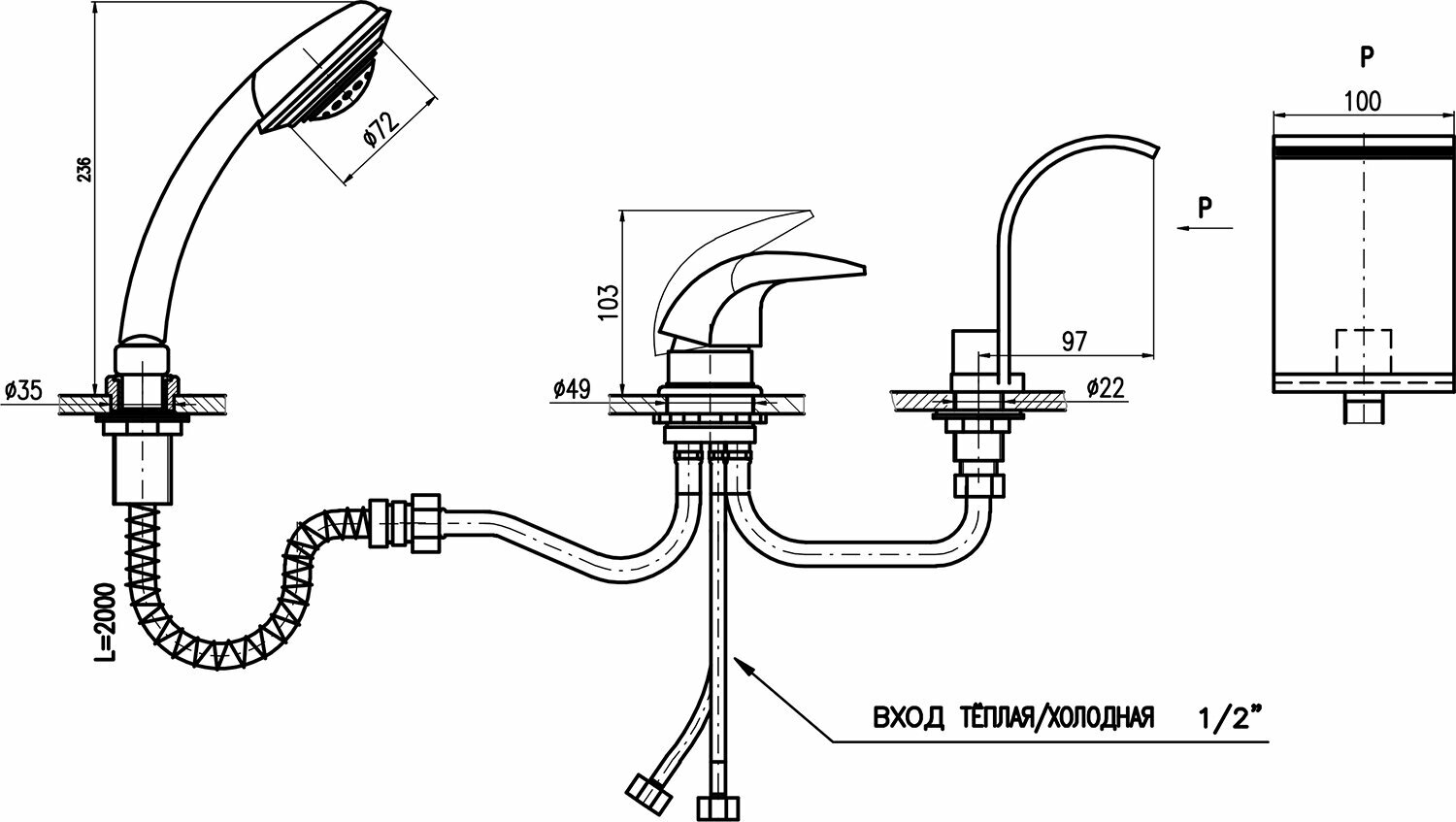 | Монтаж | на борт ванны |