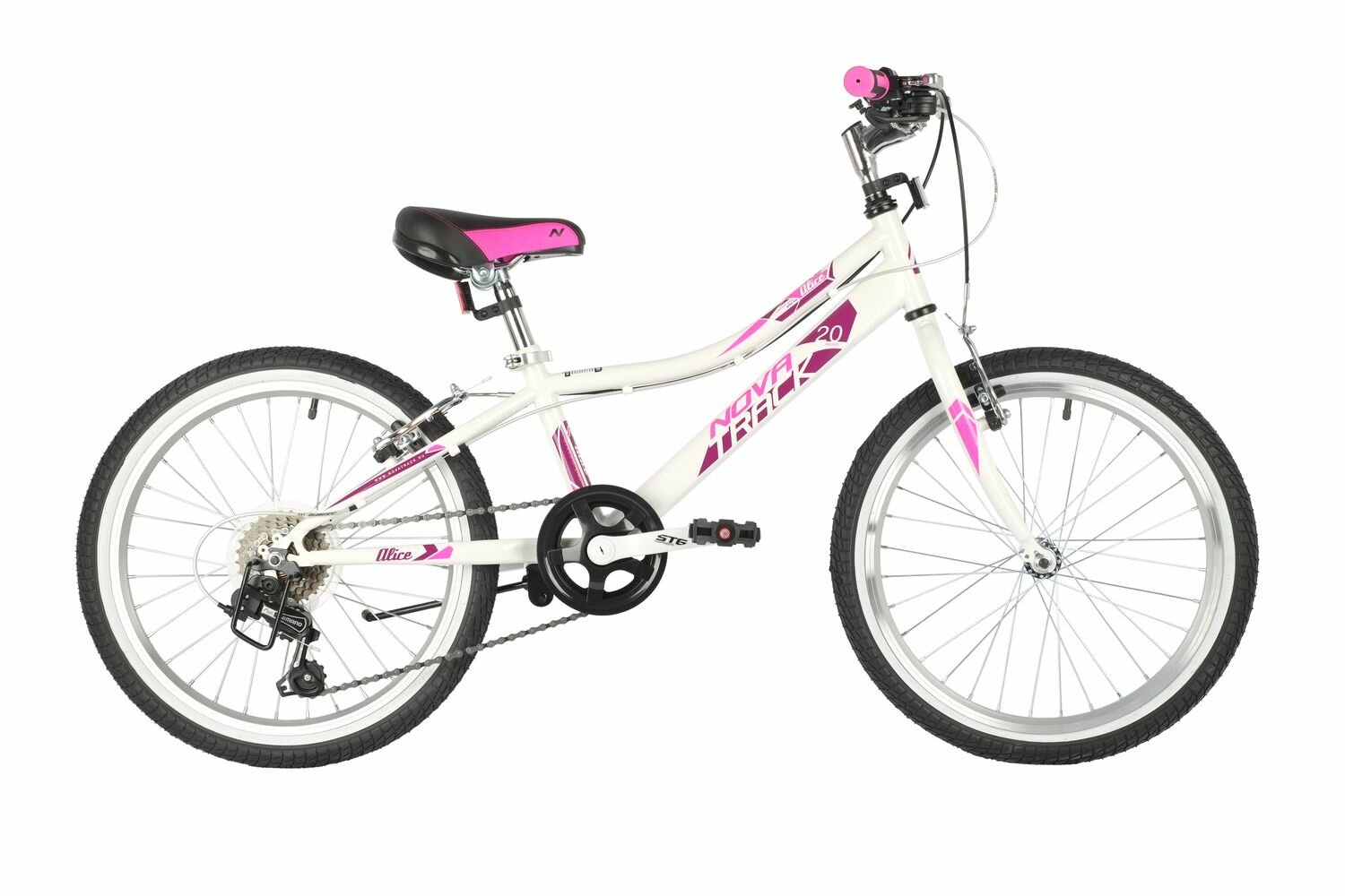Велосипед NOVATRACK 20" ALICE белый, стальная рама, 6 скор., Shimano TY21/Microshift TS38, V- brake