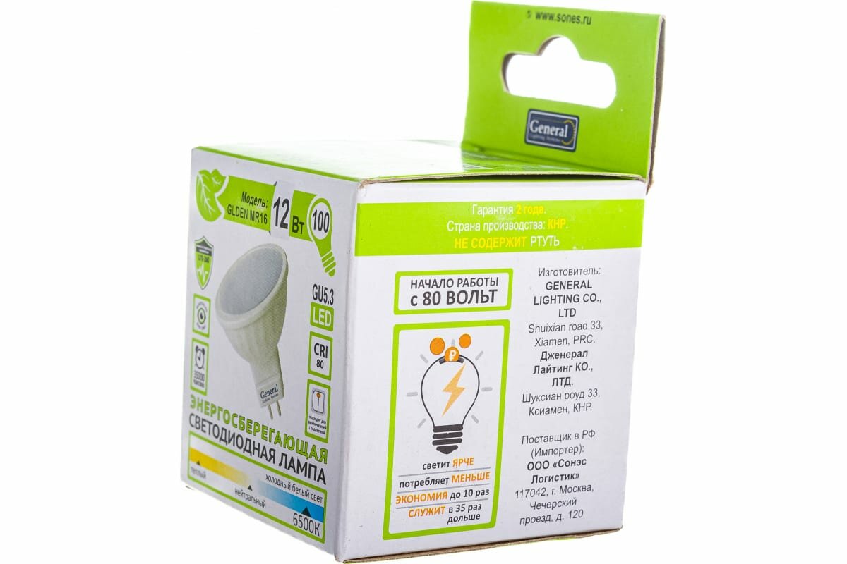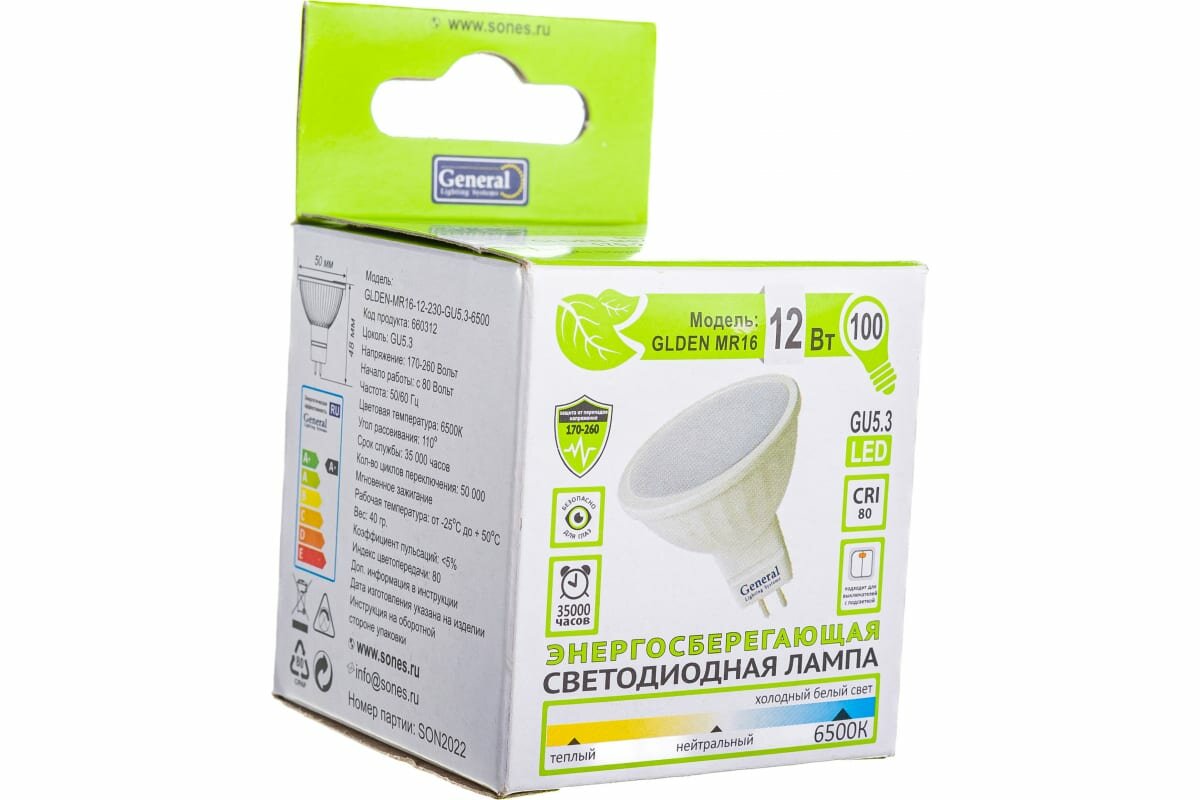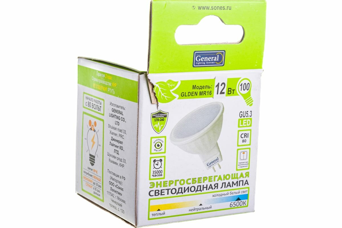 Лампа светодиодная General MR16 12W GU5.3 790 Лм 6500К интересное: