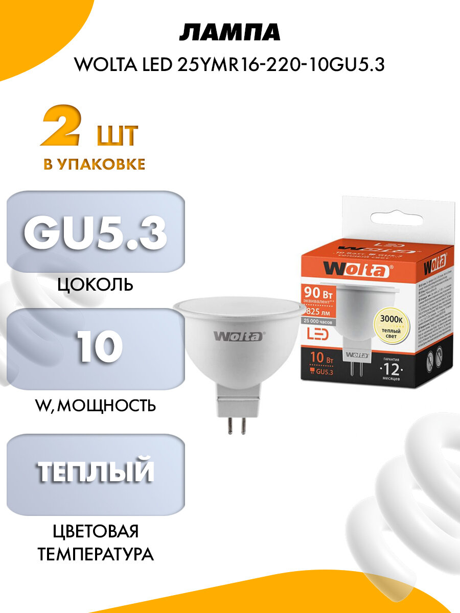 Светодиодная лампа WOLTA 25YMR16-220-10GU5.3 10Вт 3000K GU5.3