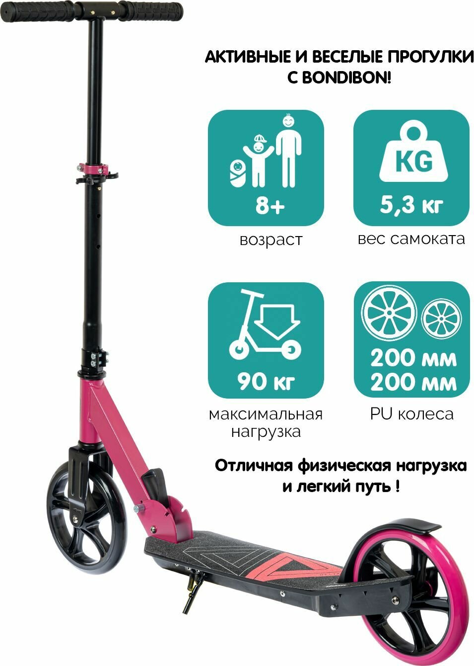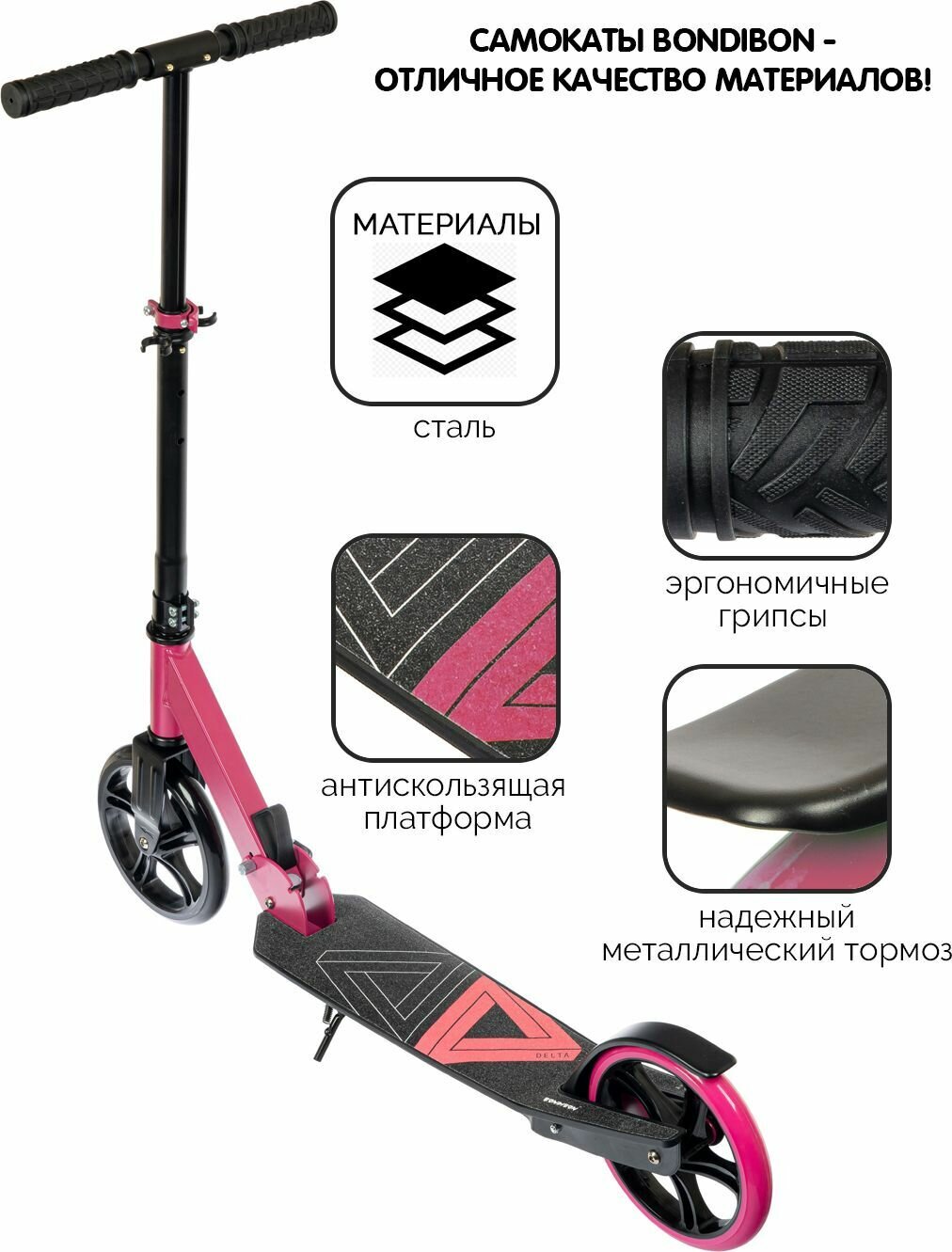 СохранитьГородской самокат BONDIBON Delta 200/200, розовый интересное: