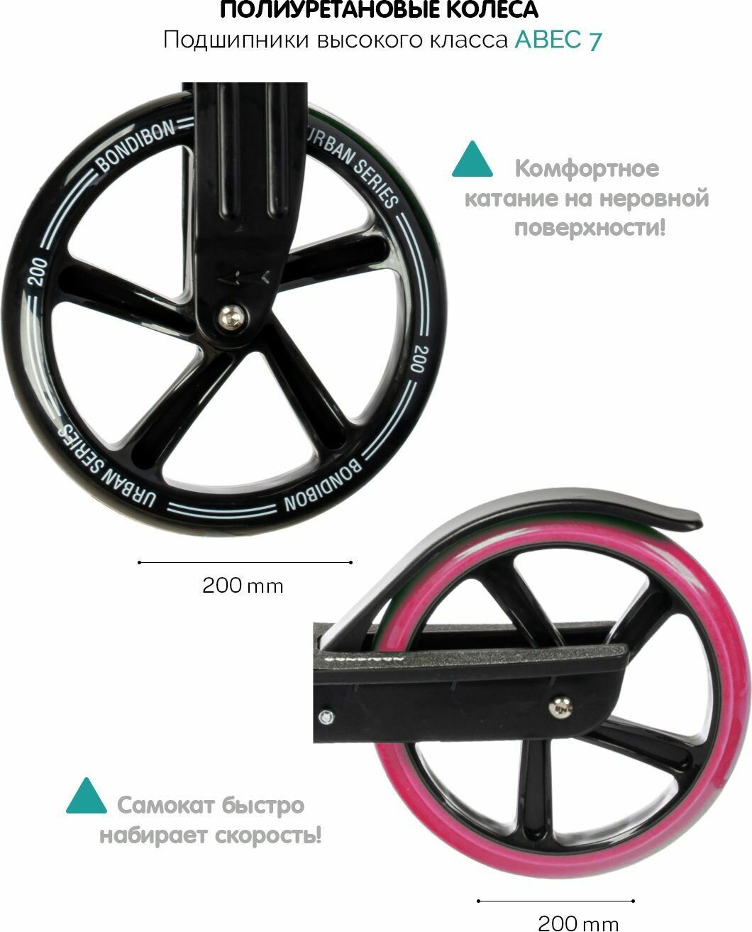 Самокат BONDIBON DELTA PU 200мм, розовый BS0011-200P.DELTA.PN20