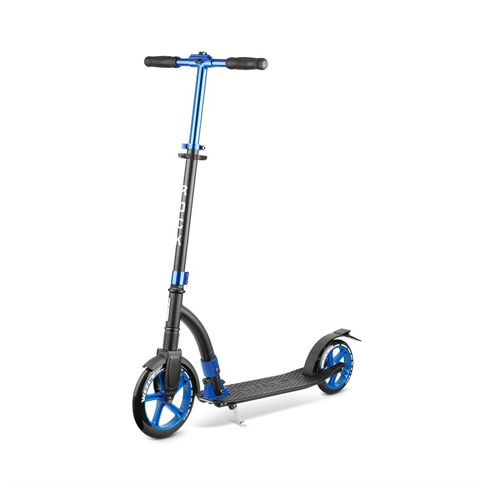 - компактный, - широкая, полность прорезиненная платформа и относительно низкая (опорная нога не так сильно устает), - эффективный задний тормоз-крыло, - передний амортизатор, - большое переднее колесо - есть переднее крыло. - есть подставка - сумка-переноска в комплекте |